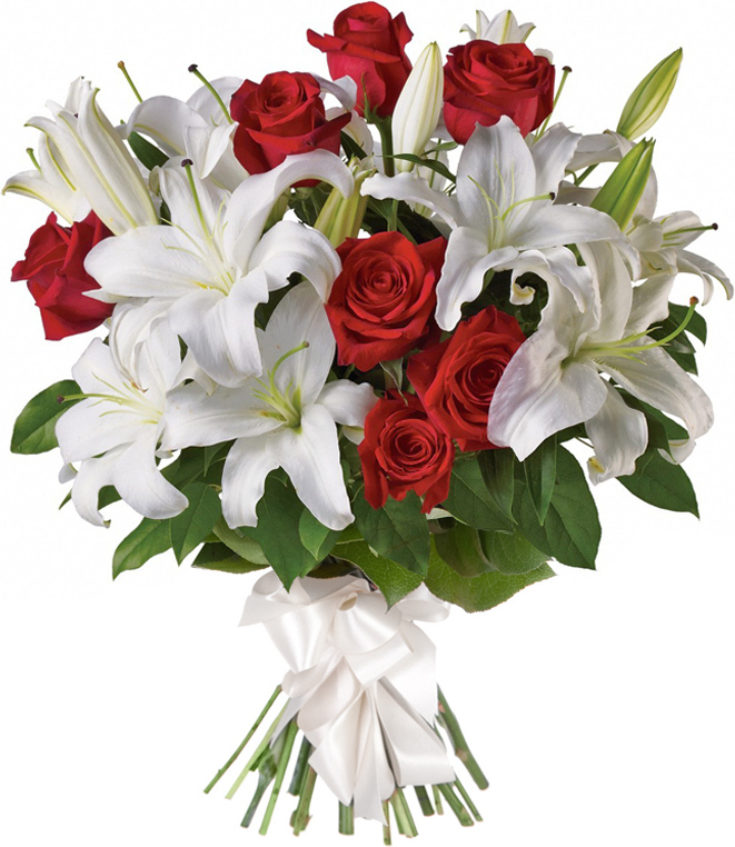 Издревле великолепная лилия особым почитанием пользовалась у римлян -  в своих цветочных празднествах, посвященных богине весны — Флоре, для украшения этого торжества они отводили главную роль розе и белой лилии, служившей признаком изысканного вкуса, роскоши и изящества. Букет из роскошных белых лилий и потрясающих красных роз - это букет, символизирующий истинную красоту и утонченность, искренние чувства, любовь и надежду.